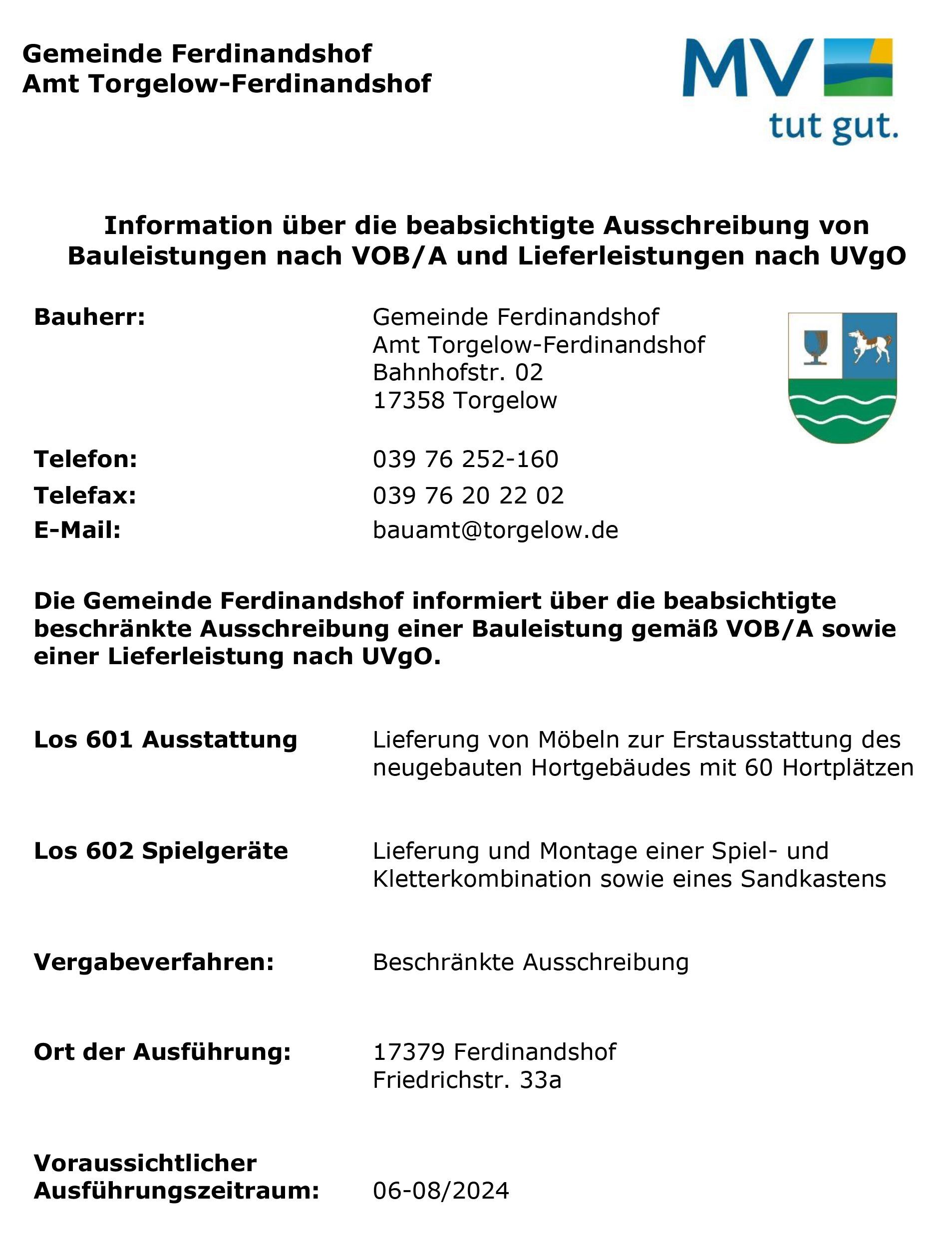 Im Namen der Gemeinde Ferdinandshof begrüße ich Sie sehr herzlich auf unseren Internetseiten. Die nachfolgenden Seiten sollen Ihnen Informationen und alles Wissenswerte über unsere Gemeinde auf moderne und ansprechende Art und Weise vermitteln.
